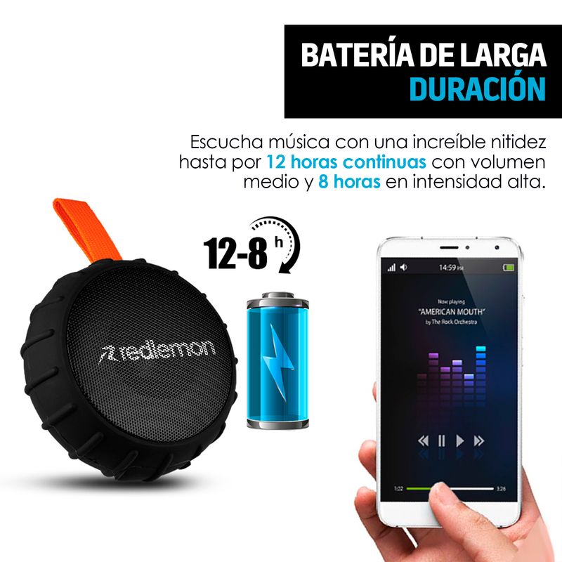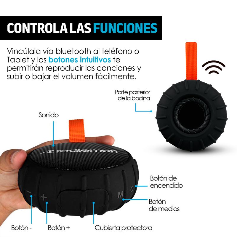 Bocina Portátil Bluetooth Redlemon Contra Agua y Caídas Sonido HD 79127-NG