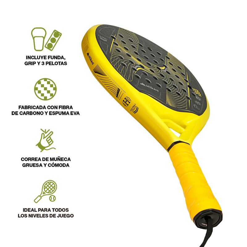 AccesoriosKitsKit Pala, Funda, Grip y 3 Pelotas Pádel Hikeo Premium Am 84650-Ye